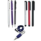 - *Package includes : 1 x Universal Stylus with Ball Point Pen - Silver ,1 x Universal Stylus with Ball Point Pen - Black , 1 x Universal Stylus with Ball Point Pen - Purple ,3 x Universal Stylus (Black ,Red,Silver),1 x Pen with Neckstrap